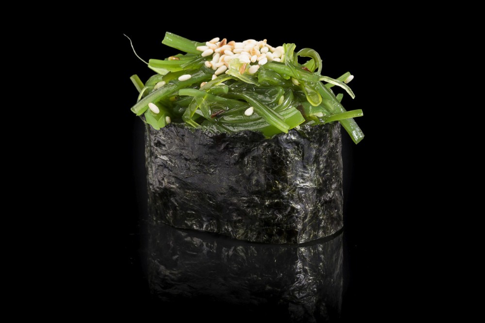 Рис, нори,Чука, ореховый соус, семя кунжута.